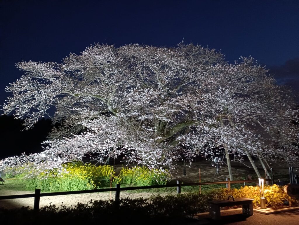 3月28日から開始した遠山桜のライトアップ(日没から20時まで)は4月9日(木)まで延長する予定でしたが、4月7日の雨と強風によりほとんどの花びらが散ってしまったため、4月8日(水)をもって終了させていただきますのでご了ください。